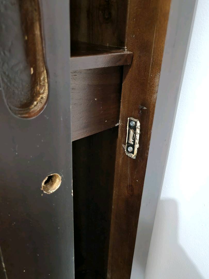 Digunakan untuk kabinet, laci, tempat sampah, lemari, lemari dll. Diy repair sendiri pintu kayu rumah berlubang, bajet tak sampai .